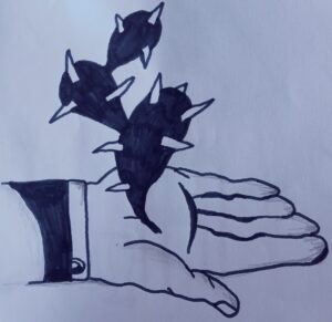 „Prędzej mi kaktus na dłoni wyrośnie”. Rys. Natalia Wajnert (na podstawie E. Lipiński, Drzewo szpilkowe).